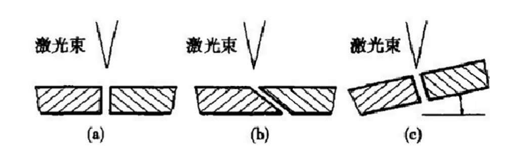 1、在鋁合金表面人工制孔或采用光收集器形式接頭,開(kāi)V形坡口或采用拼焊(拼接間隙相當(dāng)于人工制孔) 方法,都可以增加鋁合金對(duì)激光的吸收,獲得較大的熔深。另外,還可以利用合理設(shè)計(jì)焊接縫隙來(lái)增加鋁合金表面對(duì)激光能量的吸收(如圖1)。從圖上可以直觀的反應(yīng)出,將焊縫和激光束的位置關(guān)系由圖1(a)改為圖1(b)或圖1(c),使激光束與縫壁有一定角度后,激光束能夠在縫隙內(nèi)多次反射,形成一個(gè)人工小孔,增加了焊件對(duì)激光能量的吸收。